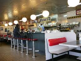 Dit soort eetgelegenheden zie je volop onderweg, alleen verkeerde ik in de veronderstelling dat je er alleen wafels kon eten, een favoriet ontbijtgerecht van de Amerikanen. Niets bleek minder waar, er stond van alles op de kaart, worstjes, burgers, eieren en wat ze noemen ‘hash bronws’, een aardappelgerecht, het lijkt op rösti. Ze zijn vierentwintig uur, zeven dagen in de week open. Er zitten altijd gasten, zoals truckers, taxichauffeurs, bouwvakkers en andere werklieden en … toeristen, zoals wij.